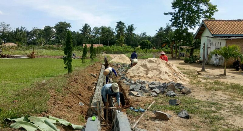 Foto Utama : pengerjaan drainase di Kampung Bandarajijaya. Foto : Yudi.