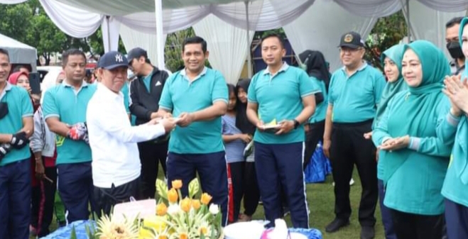 LAMPUNG UTARA (RNSI/SMSI) – Ratusan peserta sepeda santai dan jalan sehat memeriahkan puncak peringatan Hari Ulang Tahun (HUT) Ke 76 Kabupaten Lampung Utara (Lampura), Jumat, 17 Juni 2022.