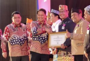 TUBABA (RSNI) – Sekretaris Daerah (Sekda) Kabupaten Tulang Bawang Barat (Tubaba) Novriwan Jaya, didampingi Kepala Dinas Pemberdayaan Masyarakat dan Tiyuh, Sofyan Nur, menerima Penghargaan Batas Desa Award dari Kementrian Dalam Negeri (Kemendagri) Republik Indonesia.
