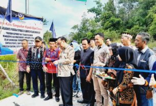Seusai acara Bupati Umar Ahmad mendampngi Kepala BPH Migas M. Fanshurullah Asa melakukan peninjauan ke sejumlah titik yang terkait dengan BPH Migas yang tersebar di Kabupaten Tubaba. (Robert)