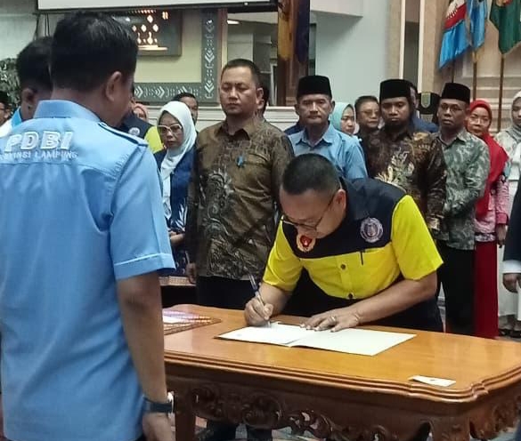 Pengukuhan dilaksanakan di Balai Keratun, Kantor Gubernur Lampung, Kamis (23/4/2026), dipimpin langsung oleh Ketua Umum PDBI Provinsi Lampung, Thomas Amirico.