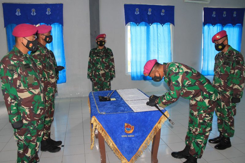 PESAWARAN (RNSI/SMSI) – Brigade Infanteri 4 Mar/BS melaksanakan kegiatan penyerahan jabatan Wadan Brigif 4 Marinir/BS dan pengukuhan Komandan Kompi Markas (Dankima) di gedung Balai Prajurit Brigif 4 Mar/BS, Wayratai, Piabung Padang Cermin. Senin, 12 April 2021.
