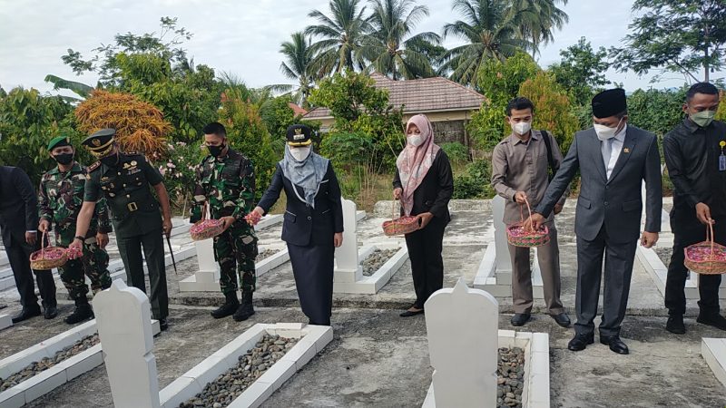 Selesai upacara ziarah dilanjutkan dengan penaburan bunga ke pusara makam para pahlawan.