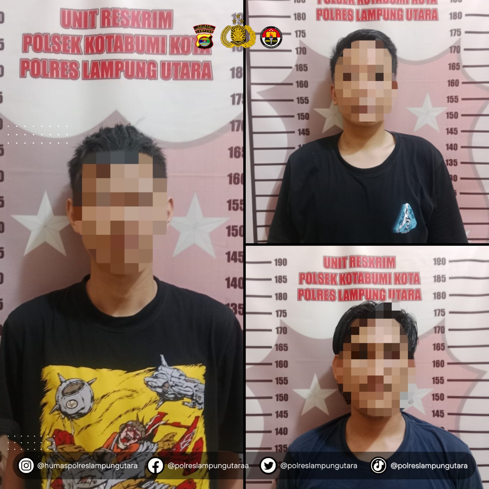 Lanjut Kapolsek, setelah menerima laporan dari korban, dirinya dan anggota unit Reskrim Polsek Kotabumi Kota melakukan serangkaian giat penyelidikan dan mengamankan tiga orang terduga pelaku.
