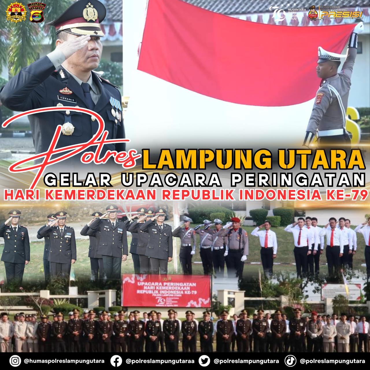 LAMPUNG UTARA (RNSI) – Polres Lampung Utara, Polda Lampung, menggelar Upacara Peringatan Hari Kemerdekaan Republik Indonesia (RI) Ke-79 Tahun 2024 di lapangan Mapolres setempat, Sabtu (17/08/24), pukul 07.00 WIB.