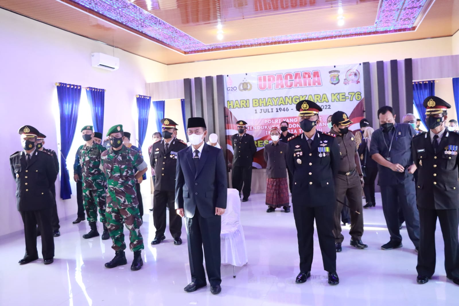 Hadir pada upacara Hari Bhayangkara ke-76 yang diselenggarakan Polres Lampung Utara itu Bupati Lampung Utara Drs. Hi. Budi Utomo, Ka. Kimal Lampung Utara Letkol Mar. Herman Sobri; Pasi Log Kodim 0412 Letda Inf Poelungan; Danki 143 Banyu Urip Letda Inf Arif Insani; Ka. Rutan Mukhlisin Fardi And IP, SH. M.H.; Kalapas Heru S. BCA IP, SH, para kepala Dinas Instansi, perwakilan organisasi pemuda, tokoh masyarakat, tokoh agama Kabupaten Lampung Utara. (*/red)