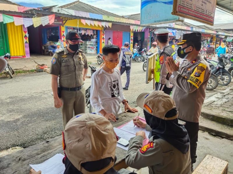 Dalam operasi yang dipimpin Kabag Ops Polres Tanggamus Kompol Bunyamin, SH. MH kali ini, kembali dilakukan penindakan oleh Satpol PP hingga membagika masker kepada pelanggar protokol kesehatan (Prokes).