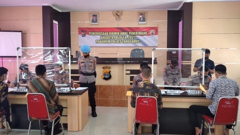 TANGGAMUS (RNSI/SMSI) – Polres Tanggamus melaksanakan pemeriksaan administrasi (Rikmin) awal, seleksi penerimaan terpadu calon anggota Polri tahun 2021 yakni Akpol, Bintara dan Tamtama di Aula Paramasatwika, Rabu, 14 April 2021, pagi.