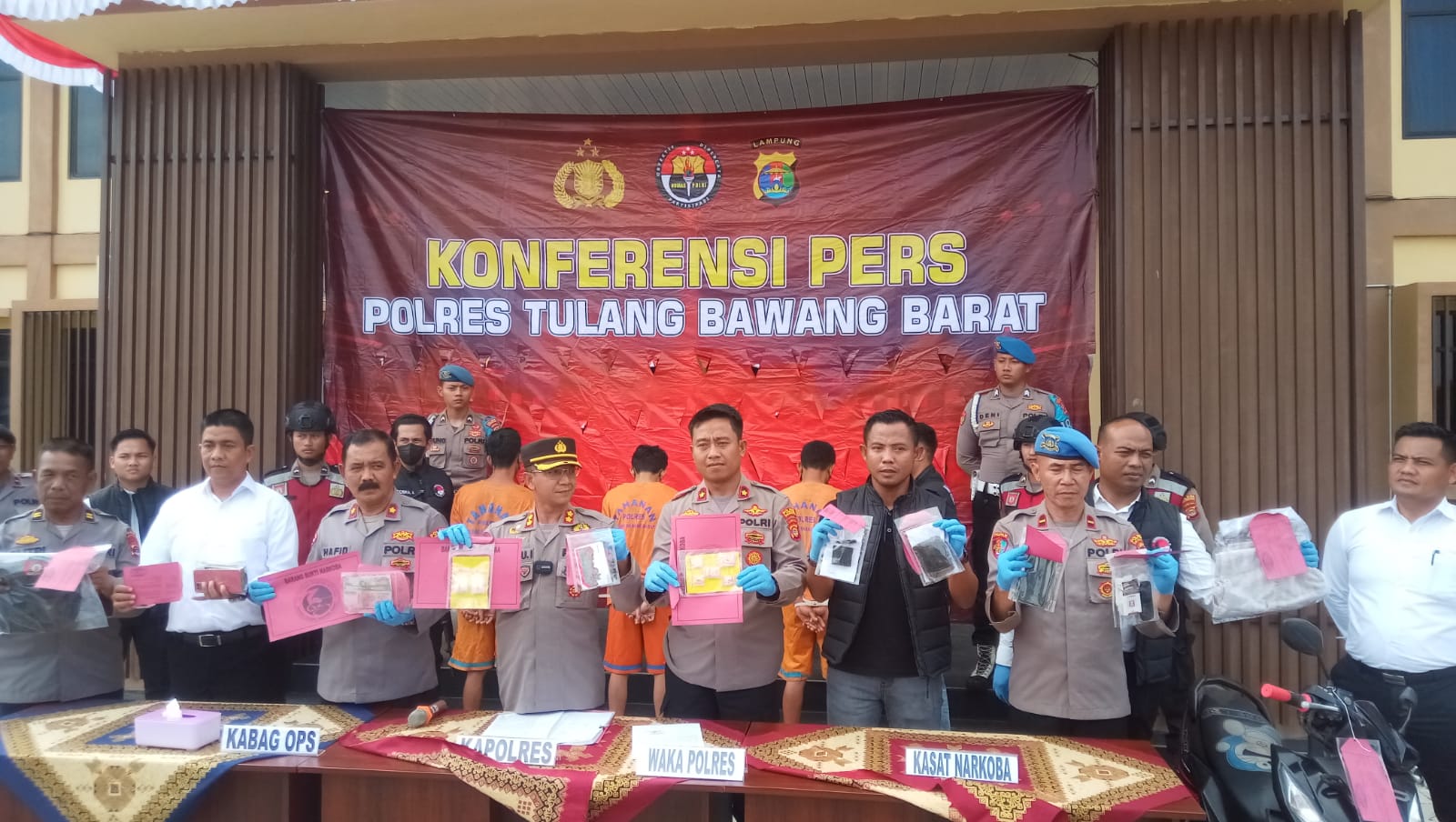 TUBABA (RSNI) – Polres Tulangbawang Barat (Tubaba) Polda Lampung menggelar konferensi pers terkait hasil pengungkapan kasus narkoba di wilayah hukum Polres Tulangbawang Barat yang dilaksanakan di halaman apel Polres Tulangbawang Barat pada Selasa, 4 Juli 2023.