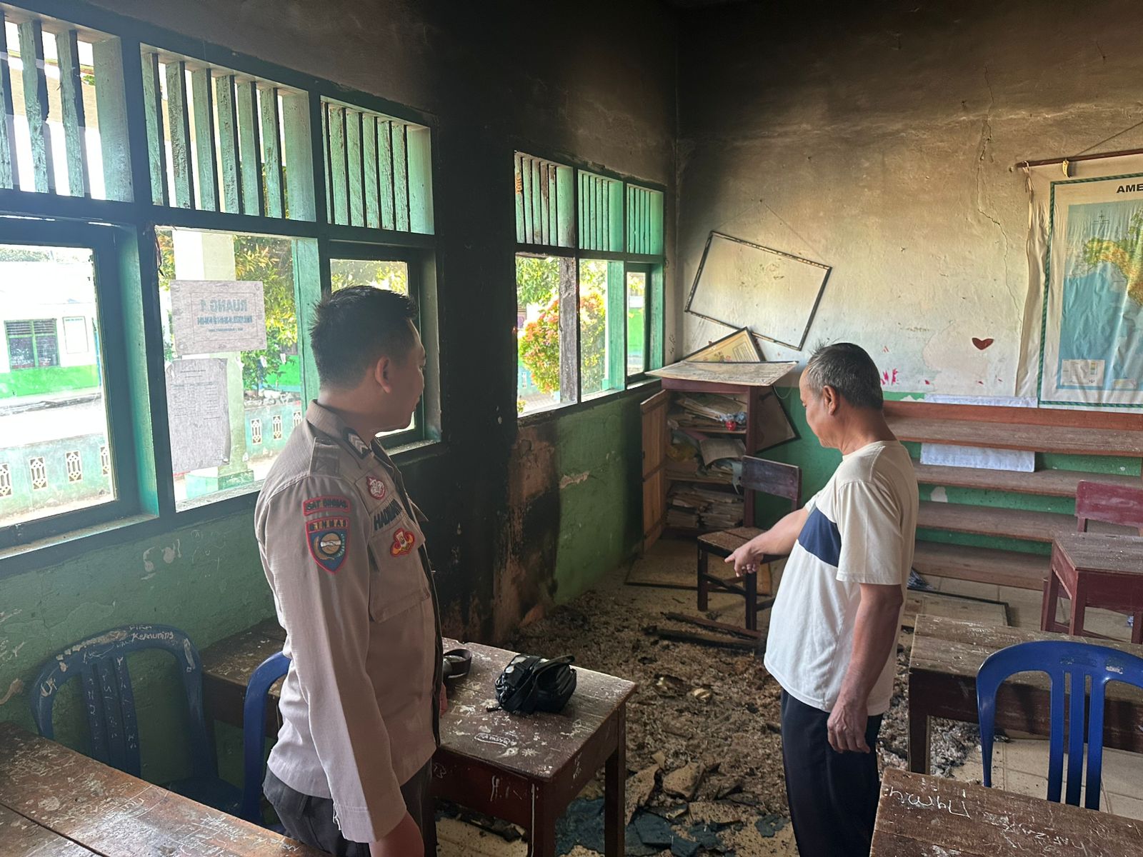 LAMPUNG UTARA (RNSI) – Personel Polsek Bukit Kemuning Polres Lampung Utara mendatangi TKP pengrusakan atau pembakaran terhadap ruang SD 01 Desa Suka Menanti Kecamatan Bukit Kemuning oleh orang tidak dikenal.