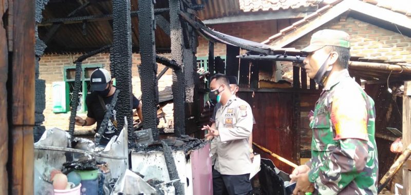 Foto Utama : jajaran Polsek Kotaagung mengidentifikasi rumah korban lebakaran di Pekon Sukabanjar. Foto : Nusmanto