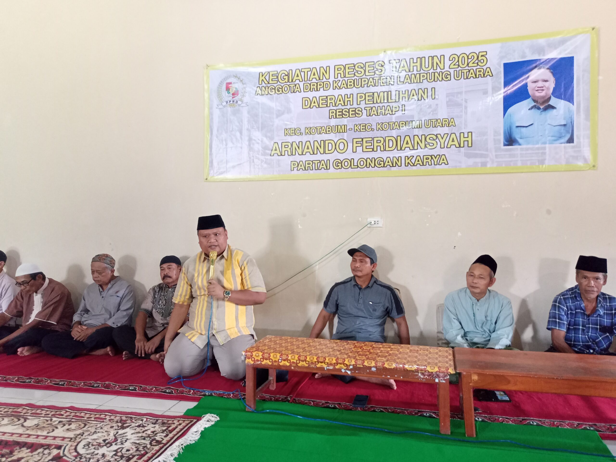 LAMPUNG UTARA (RNSI) – Di hari terakhir gelaran safari reses tahap I anggota DPRD Kabupaten Lampung Utara Fraksi Partai Golkar, Arnando Ferdiansyah, yang dilaksanakan pada Kamis, 27 Maret 2025, bertempat di Pondok Pesantren (Ponpes) Al-falah Minhajul Karomah, Desa Sawojajar, Kecamatan Kotabumi Utara, Lampung Utara.