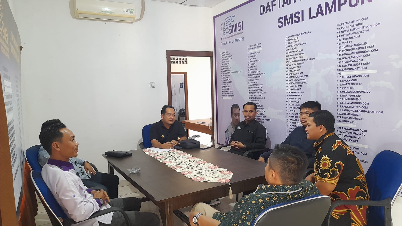 Rombongan diterima dari LBH SMSI, Robert O Aruan, SH, MH, CLA, Faizal Afrianto, SH.I dan Rizki Kurniawan serta Sekretaris SMSI Lampung, Senen, S.I.Kom.