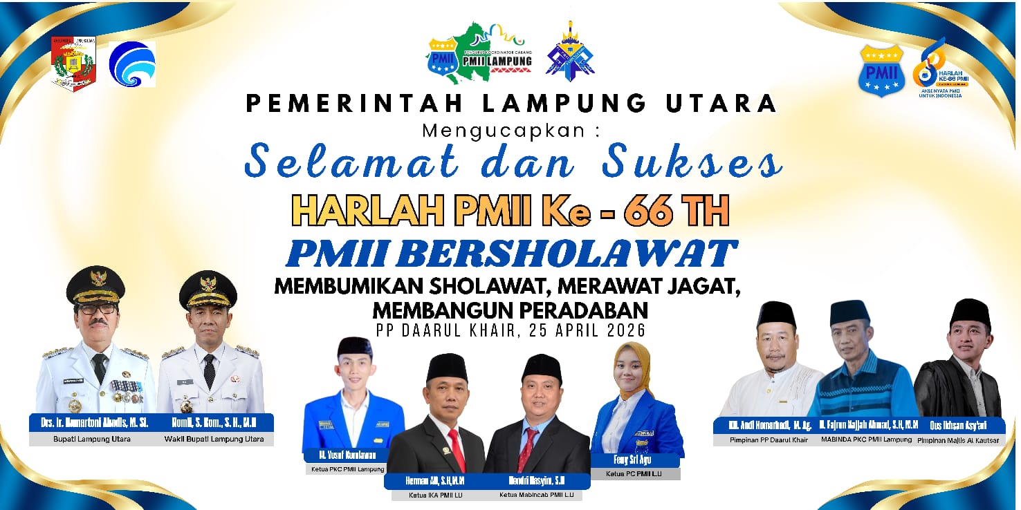 LAMPUNG UTARA (RNSI) – Pengurus Koordinator Cabang (PKC) Pergerakan Mahasiswa Islam Indonesia (PMII) Lampung akan menggelar puncak peringatan Hari Lahir (Harlah) ke-66 di Kabupaten Lampung Utara sebagai tuan rumah.