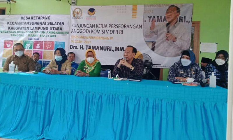 LAMPUNG UTARA (RNSI/SMSI) – Memasuki hari ketiga pelaksanaan ibadah puasa di bulan Ramadan 1442 H, anggota Komisi V DPR-RI, Drs. H. Tamanuri, MM, melangsungkan kunjungan kerja perseorangan dalam masa reses persidangan dengan menyambangi warga Desa Ketapang dan Desa Kotaagung, Kecamatan Sungkai Selatan, Lampung Utara, Kamis, 15 April 2021, di balai desa setempat.