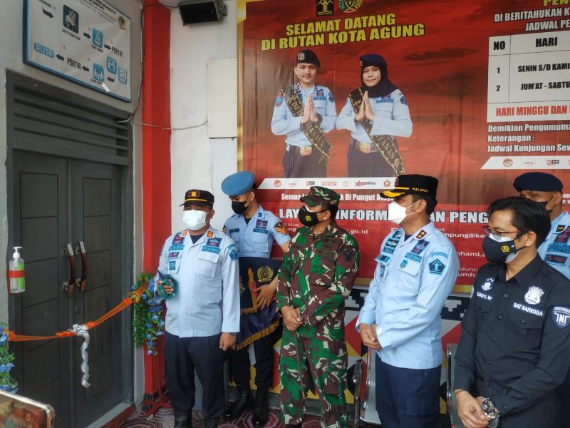 Foto Utama : pemotongan pita peresmian Pos Pengawasan dan Pemeriksaan (Wasrik) gerbang Utama Rutan Kotaagung. Foto : ist.