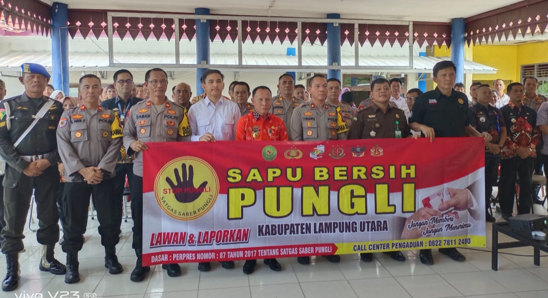 Hadir dalam kegiatan tersebut Asisten I Pemkab Lampung Utara, Mankodri, S.H.,M.H, Ketua Satgas Saber Pungli Kabupaten Lampung Utara, Waka Polres Lampung Utara Kompol Yohanis, S.H., M.H,.