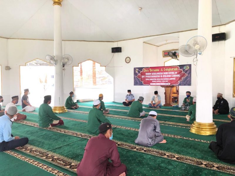 BANDARLAMPUNG (RNSI/SMSI) – Seluruh warga binaan berserta para Pegawai Lapas Narkotika Kelas II A Bandarlampung menggelar istigosah serentak seluruh UPT Lampung dan doa bersama untuk mendoakan wabah virus Covid – 19 segera berakhir, mengingat pademi corona yang sedang meningkat di sejumlah daerah, Senin, 12 Juli 2021.