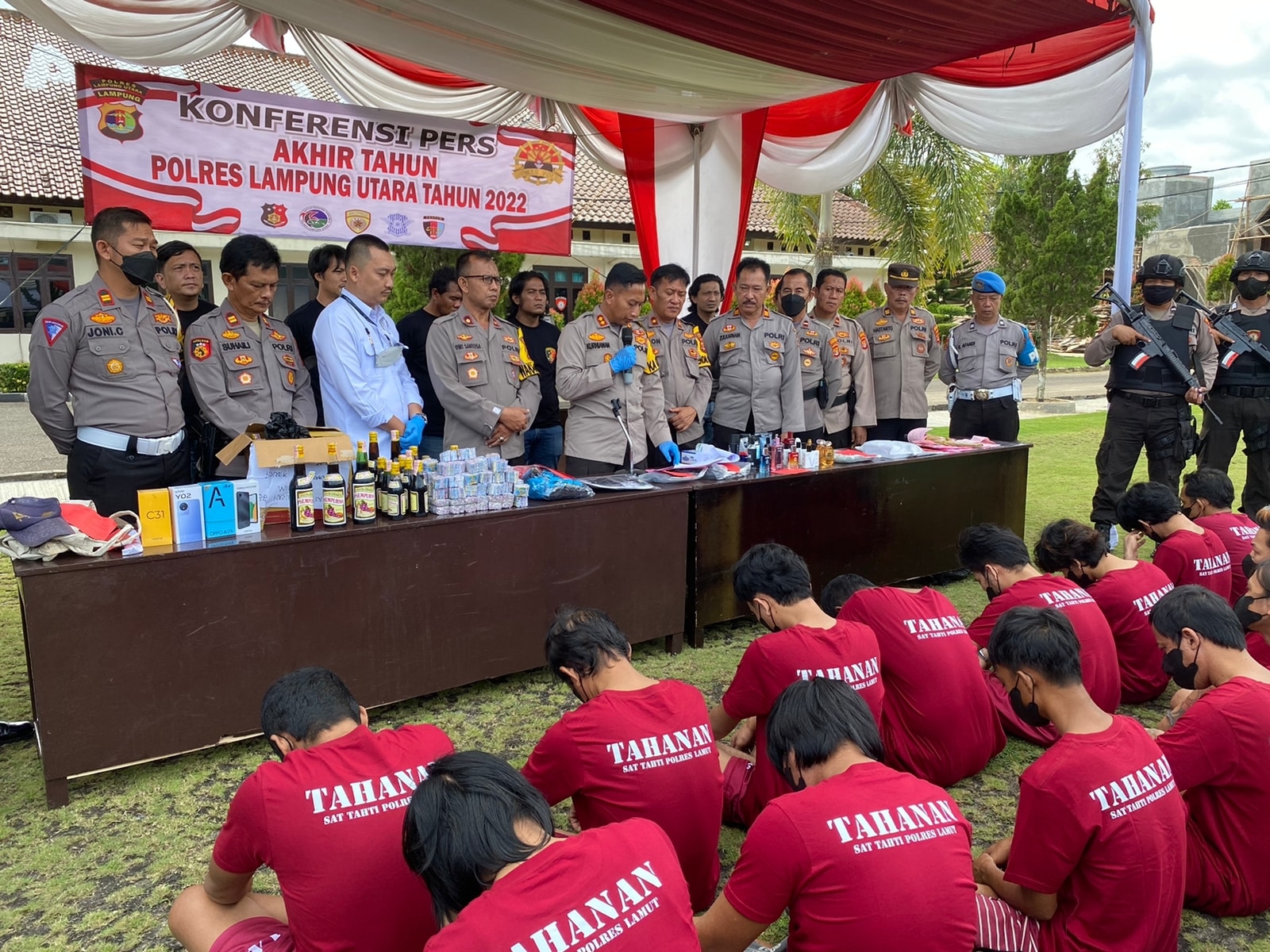 LAMPUNG UTARA (RNSI) – Dipenghujung akhir tahun 2022, Polres Lampung Utara menggelar Konferensi Pers hasil kegiatan yang telah di laksanakan berserta Polsek dalam jajaranya yang di gelar di lapangan apel mapolres setempat, Sabtu (31/12/2022).