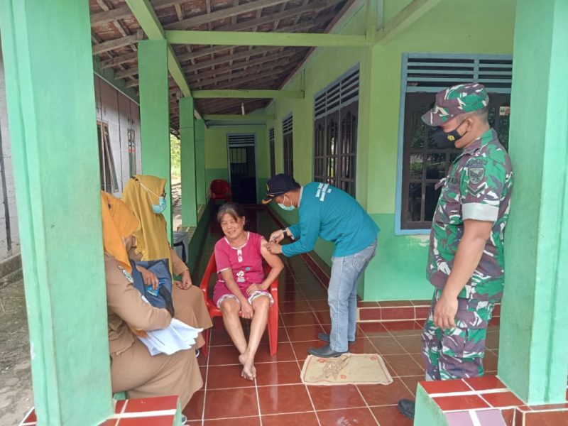 PESISIR BARAT (RNSI/SMSI) – Bintara Pembina Desa (Babinsa) Koramil 422-01/Pesisir Utara Kodim 0422/LB, Sersan Dua (Serda) Herudin dampingi petugas kesehatan melaksanakan vaksinasi secara door to door di Pekon Malaya, Kecamaatan Lemong, Kabupaten Pesisir Barat, Rabu, 2 Februari 2022.