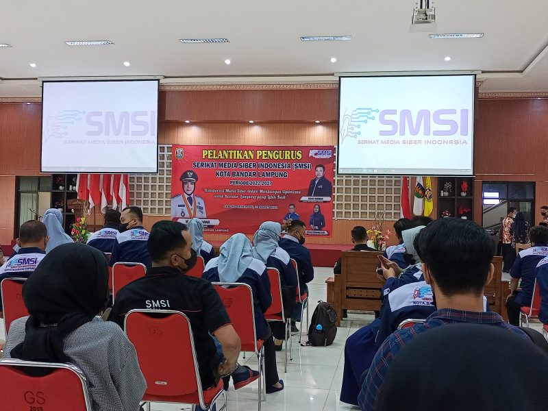 BANDARLAMPUNG (RNSI/SMSI) – Walikota Bandarlampung, Eva Dwiana, dan Kapolresta Bandarlampung, Kombes Pol Ino Harianto, hadiri pelantikan Pengurus Serikat Media Siber Indonesia (SMSI) Kota Bandarlampung, periode 2022-2027.