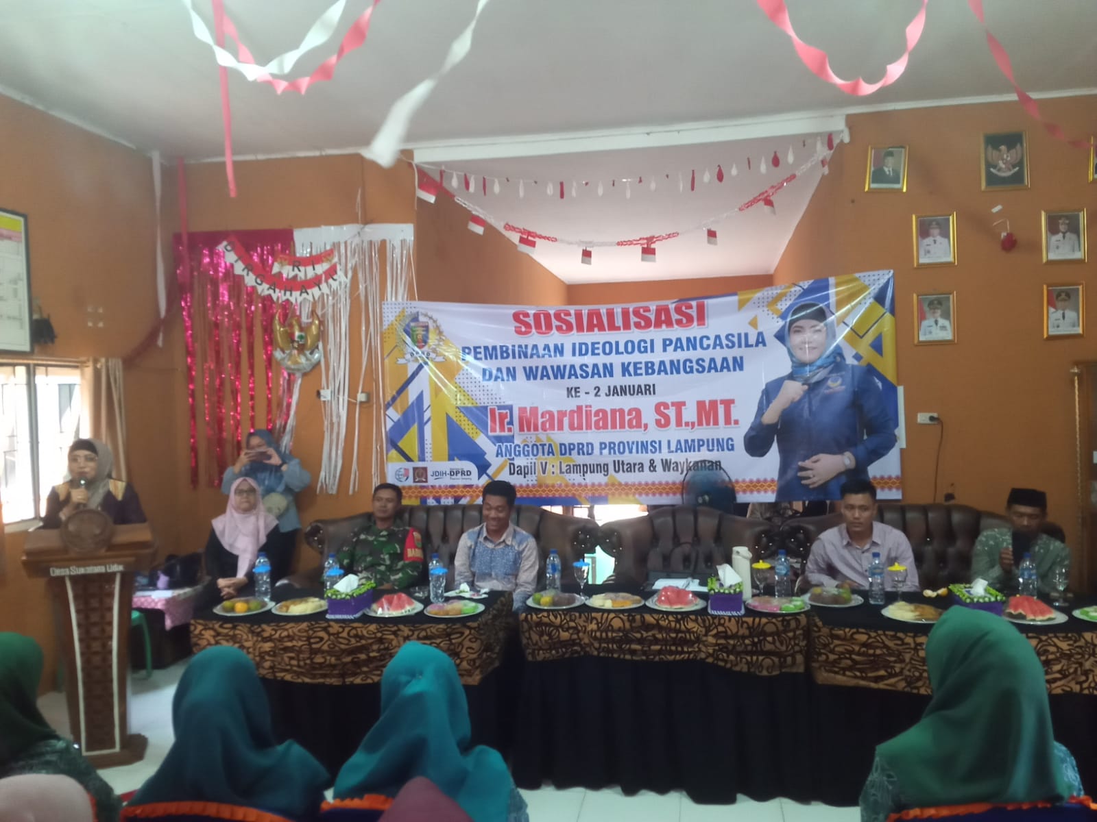 LAMPUNG UTARA (RNSI) – Untuk terus menanamkan sikap penuh toleransi antarwarga, Wakil Ketua Komisi V DPRD Provinsi Lampung, Ir. Mardiana, S.T., M.T., melangsungkan Sosialisasi Pembinaan Ideologi Pancasila dan Wawasan Kebangsaan (PIP-WK) kedua pada Januari 2026.