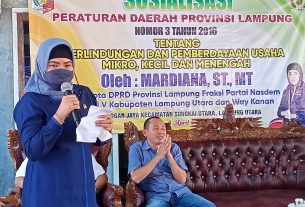 LAMPUNG UTARA (RNSI) – Anggota Komisi IV DPRD Provinsi Lampung, Ir. Mardiana, S.T., M.T., menyosialisasikan Pembinaan Ideologi Pancasiladan Wawasan Kebangsaan (IPWK), pada Sabtu, 8 Juni 2024, bertempat di Desa Talangjembatan, Kecamatan Abung Kunang, Lampung Utara.