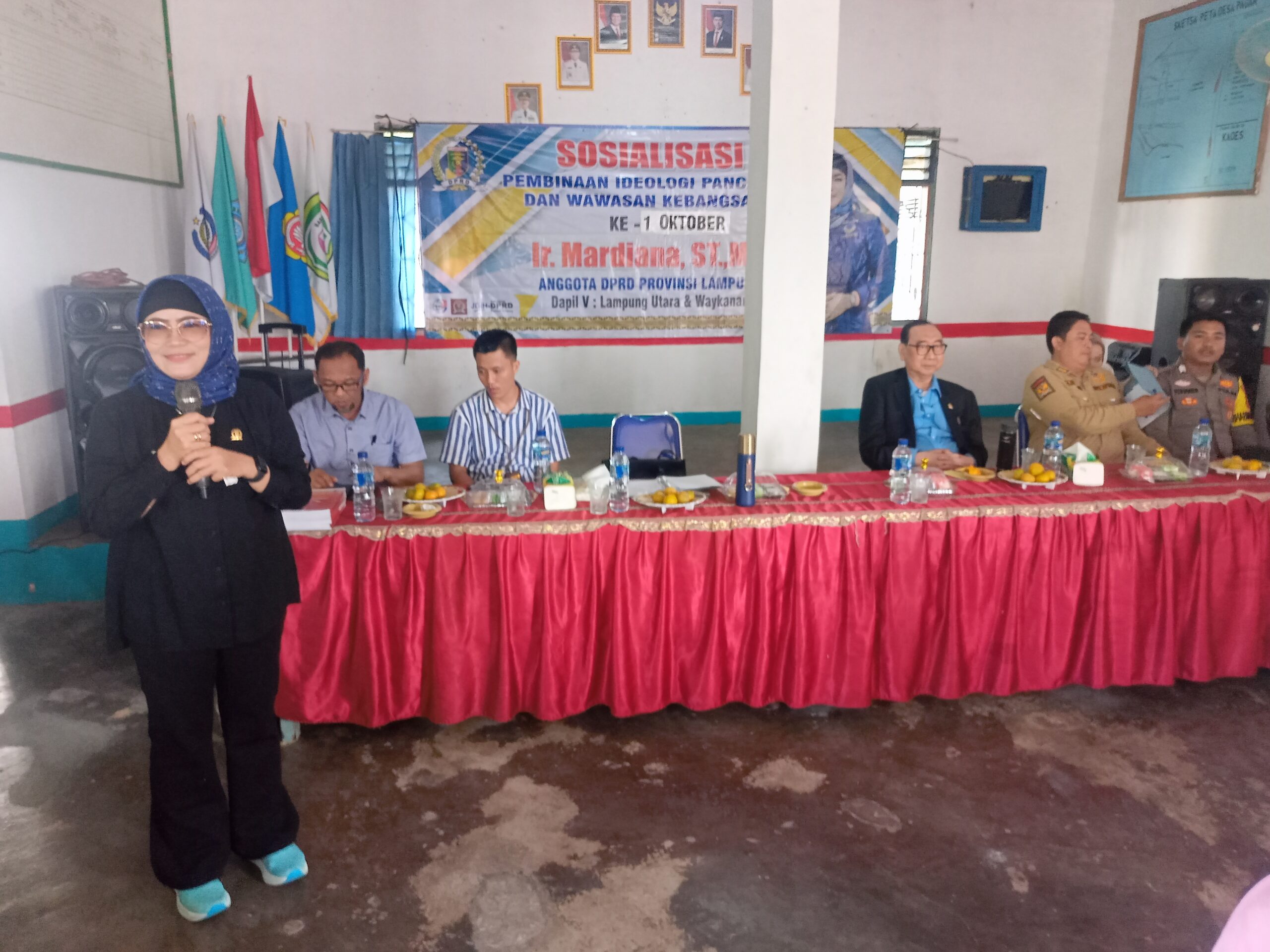 LAMPUNG UTARA (RNSI) – Wakil Ketua Komisi V DPRD Provinsi Lampung, Ir. Mardiana, S.T., M.T., melangsungkan Sosialisasi Pembinaan Ideologi Pancasila dan Wawasan Kebangsaan (PIP-WK) di Desa Pagar, Kecamatan Blambangan Pagar, Lampung Utara, Sabtu, 11 Oktober 2025.