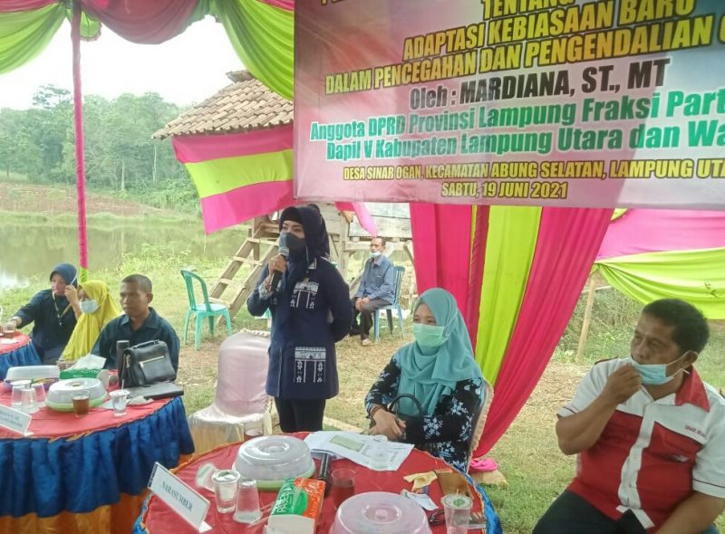 Hal ini disampaikan anggota DPRD Provinsi Lampung asal Fraksi Partai NasDem, Mardiana, ST., MT., dalam Sosialisasi Peraturan Daerah Prov Lampung Nomor 3 tahun 2020 tentang Adaptasi Kebiasaan Baru dalam Pencegahan dan Pengendalian Covid-19, Sabtu, 19 Juni 2021, yang terpusat di Desa Sinarogan, Kecamatan Abung Selatan, Lampung Utara.