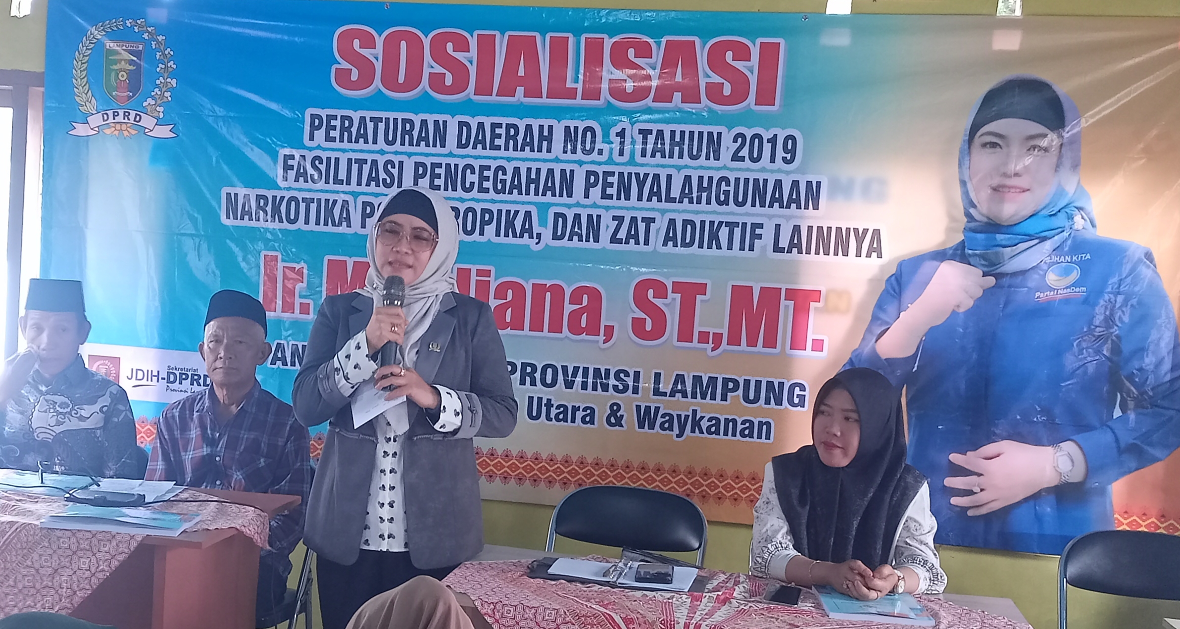 Demikian disampaikan Wakil Ketua Komisi V DPRD Provinsi Lampung, Ir. Mardiana, S.T., M.T., dalam Sosialisasi Peraturan Daerah (Sosperda) nomor 1 tahun 2019, tentang Fasilitasi Pencegahan Penyalahgunaan Narkotika, Psikotropika dan Zat Adiktif lainnya.