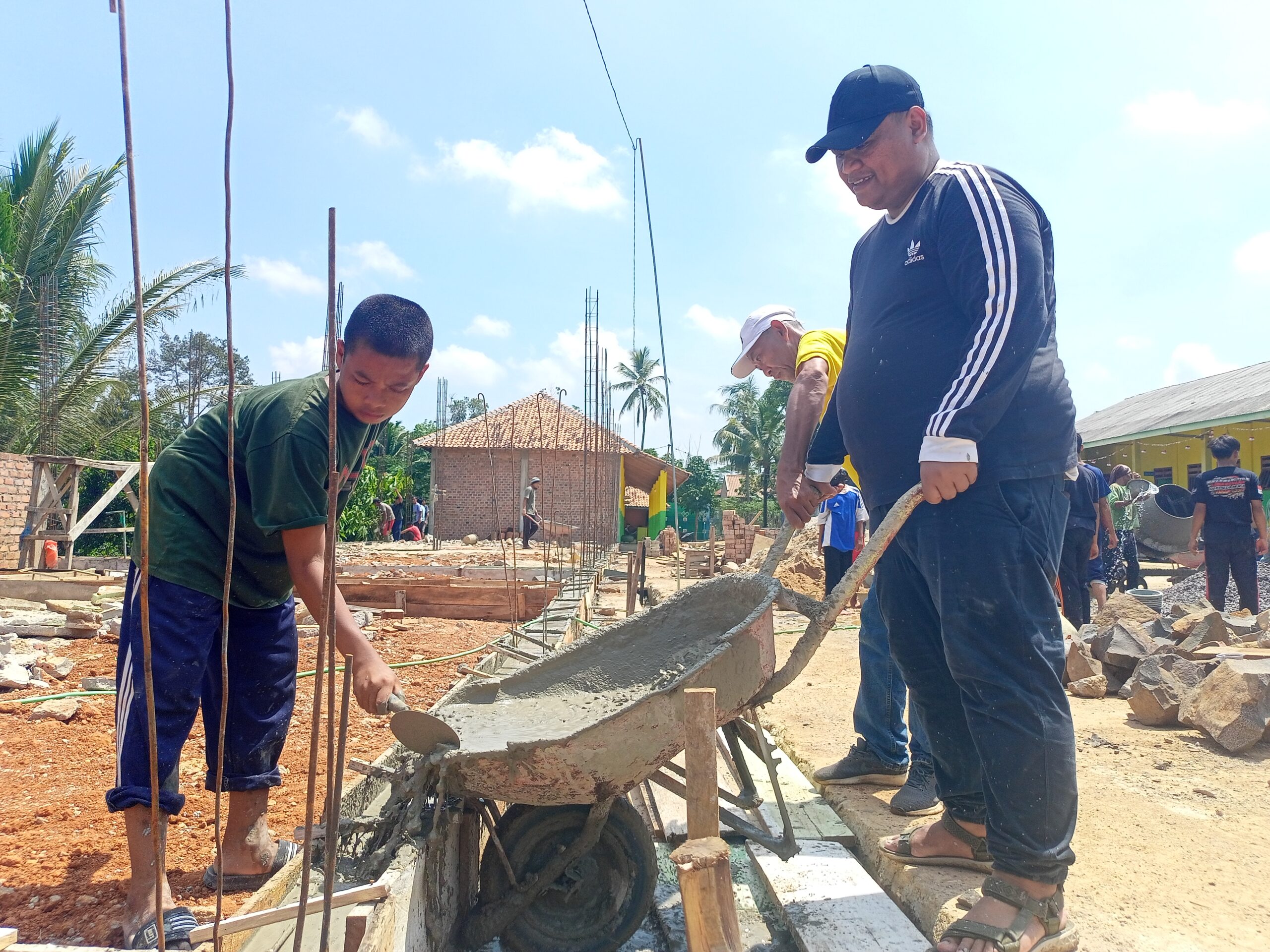Hangatnya sinar matahari sangat ideal untuk pekerjaan sloof pondasi bangunan yang dibuat pengurus Pondok Pesantren (Ponpes) Alfalah Minhajul Karomah Desa Sawojajar, Kecamatan Kotabumi Utara, Lampung Utara.