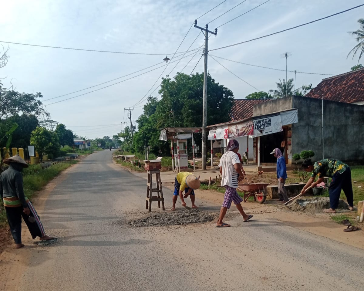LAMPUNG TENGAH (RNSI/SMSI) – Masyarakat Kampung Terbanggi Subing, Lampung Tengah bersama para pemuda, bergotong-royong menutupi jalan berlubang di ruas jalan menuju Kampung Sidowaras.