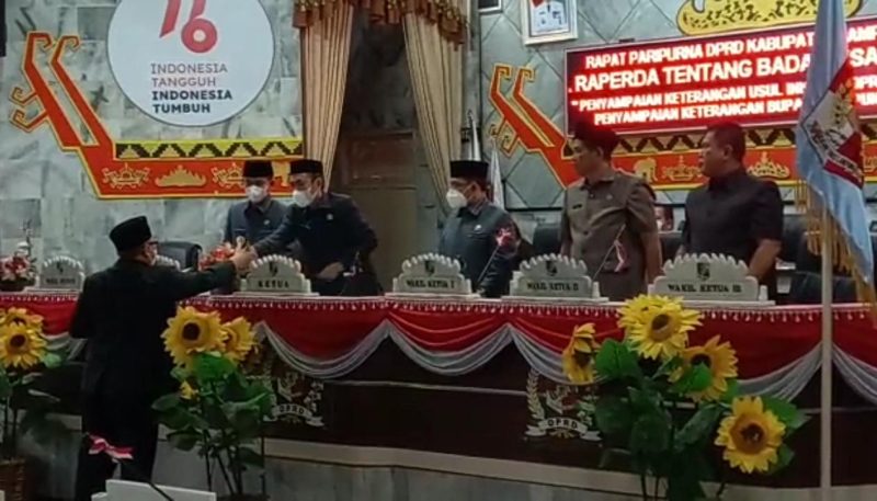 Sidang paripurna dimaksud dilaksanakan di ruang sidang DPRD setempat, pada Jumat kemarin, 22 April 2022.