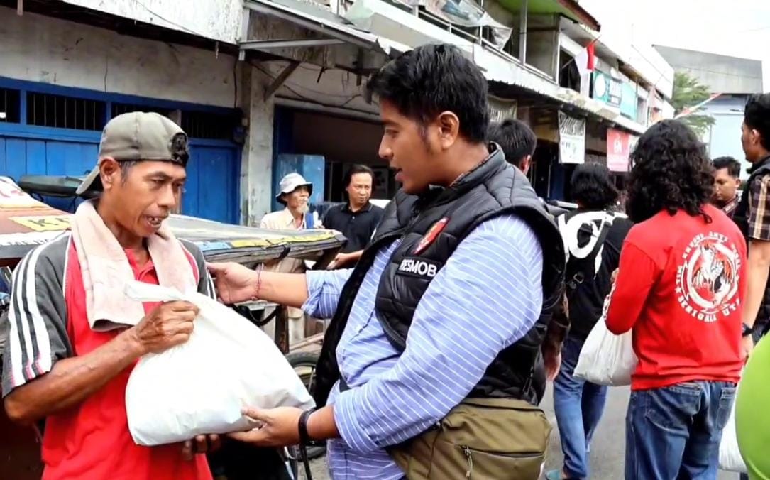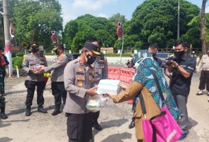 Bansos tersebut di saluran oleh Kasat Reskrim AKP Stef Boyoh dan anggota Tekab 308 kepada tukang becak yang ada di sekitar pasar Dekon Kotabumi Kabupaten Lampung Utara.