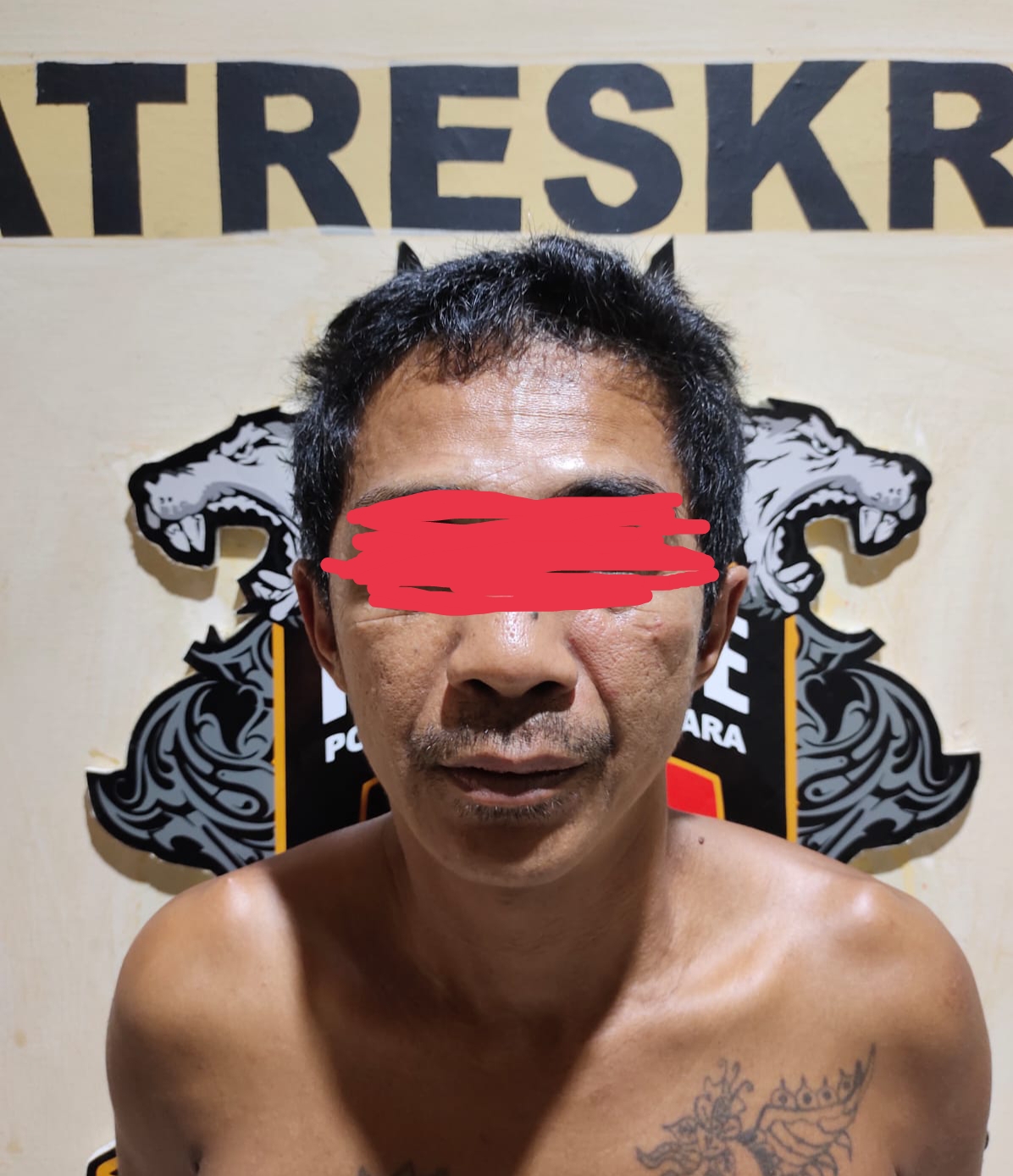 Saat ditangkap, tersangka sedang berada di rumahnya di Dusun Kampung Sunda, Kelurahan Rejosari, Kecamatan Kotabumi.