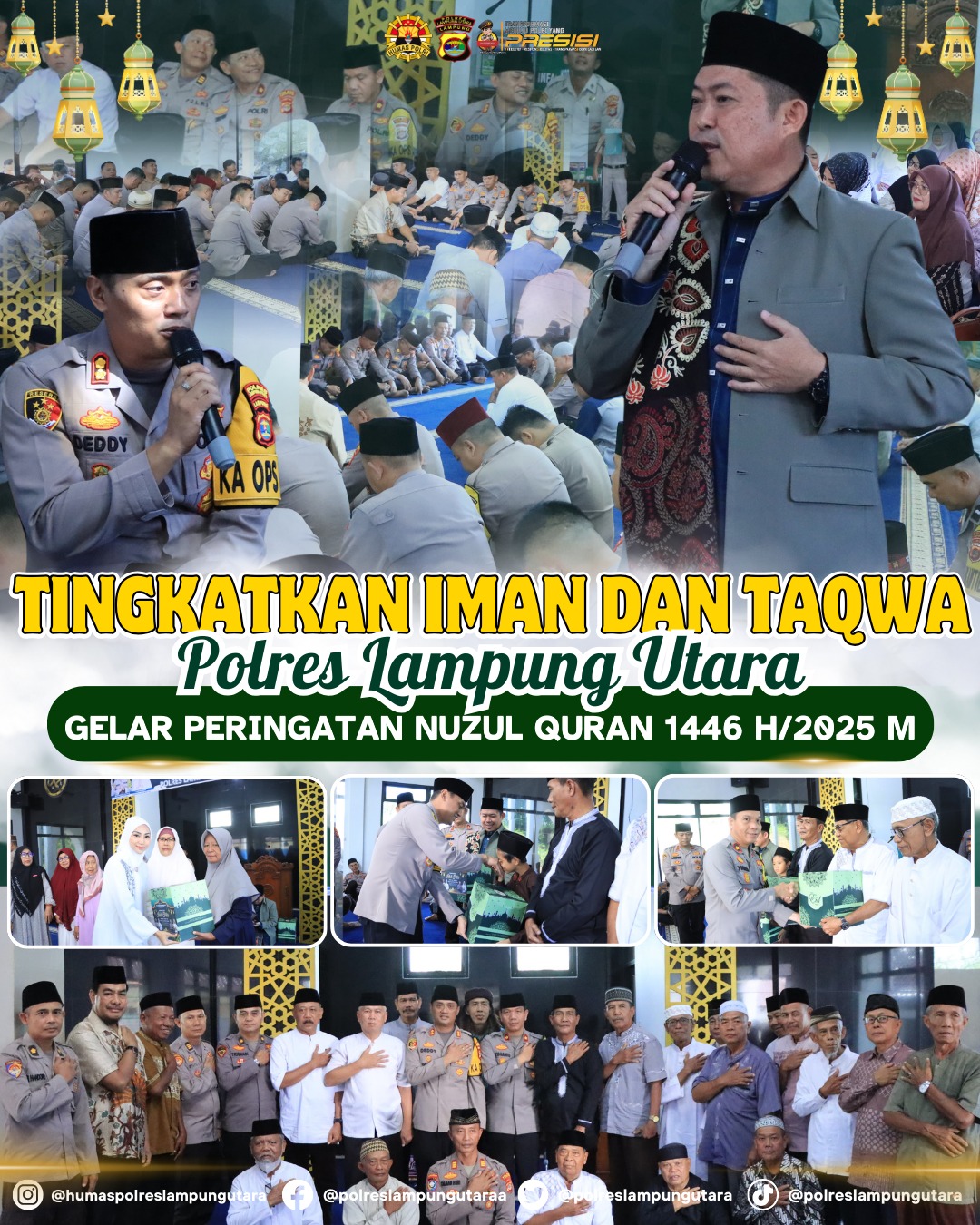 LAMPUNG UTARA (RNSI) – Untuk meningkatan Iman dan Taqwa, Polres Lampung Utara Gelar Peringatan Nuzul Quran 1446 H/2025 M yang di laksanakan di masjid Al-Fachri Mapolres setempat, Jum’at (21/3/25).