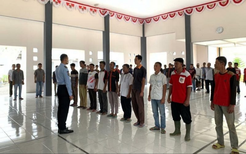 Lampung Tengah (Restorasi News Siber Indonesia/SMSI) – Kepala Lembaga Pemasyarakatan Kelas ll B Gunungsugih, Lampung Tengah, Denial Arif, pimpin apel bersama pemuka, Tamping, dan pekerja, di Aula dr. Sahardjo, Senin, 18 Januari 2021.