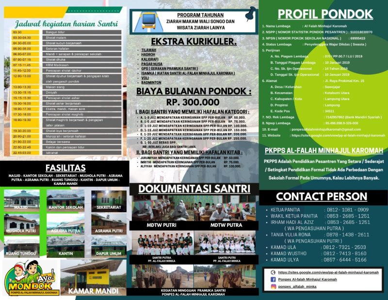 Tuntunlah ilmu di Pondok Pesantren Salafiyah Al-Falah Minhajul Karomah Desa Sawojajar, Kecamatan Kotabumi Utara, Lampung Utara.